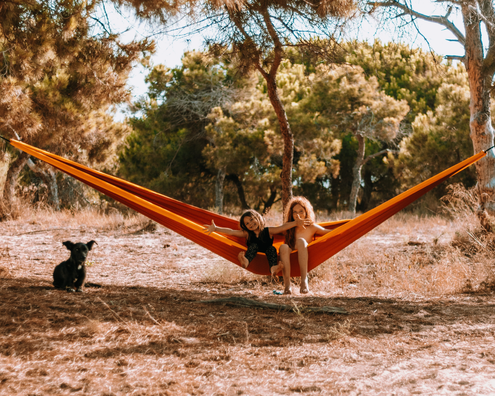 The TTTM camping hammock is delivered in its own compact pouch, making it ideal as a travel bed, and perfect for taking a nap or just chilling. It makes for a marvelous playground too...
