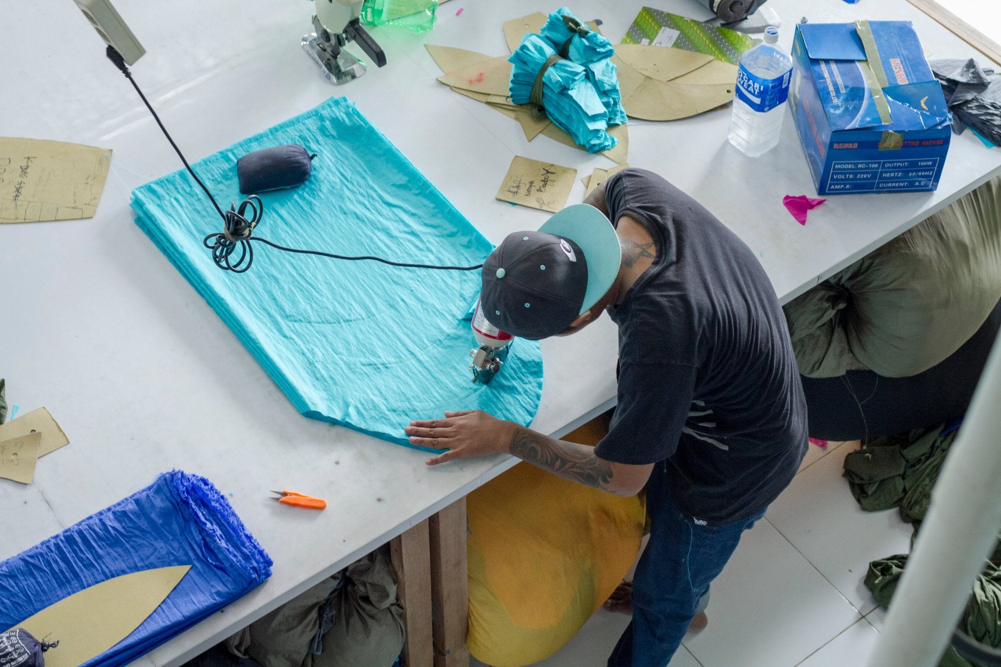 Ever wondered what happens to a defective product afterward? It goes straight to our repair workshop - where we sew and glue with all our might! With great care, we do everything possible to extend the lifecycle of the item and operate in an environmentally friendly manner. Right after, it joins our flea market inventory and is offered to you as B-grade goods in our shop in Vienna.