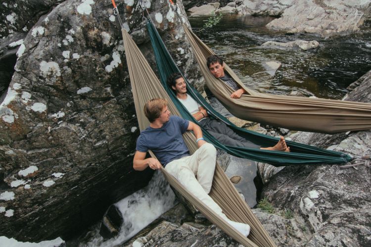 Ultra-light hammocks, perfectly cut for your adventures. Thanks to 25 years of experience, our Original parachute-nylon Hammock is the standard in when it comes to Travel Hammock. It is ideal for a life as digital nomad, trekking through the wilderness, or just for a nap in your garden with complete relaxation. TICKET TO THE MOON's Original Hammocks have been tested in all climates, around the world, they meet every requirement for the most challenging terrain.